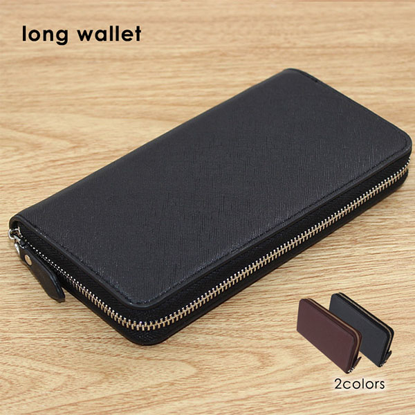 長財布 ロングウォレット メンズ財布 ラウンドジップ シンプル 無地 ファスナータイプ 大人カッコイイ 高級感 スタイリッシュ 収納力抜群 機能的 全2色 ブラック ブラウン 高見え 黒 茶
