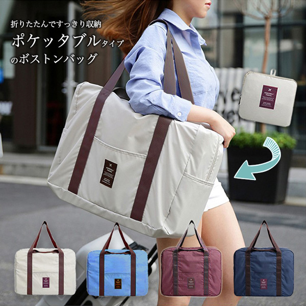 ボストンバッグ トラベルバッグ キャリーオンバッグ コンパクト収納可能 折りたたみ収納 ポケッタブルタイプ 旅行 大容量収納可能 2way 手持ち 肩掛け オープンポケット付き 全4色