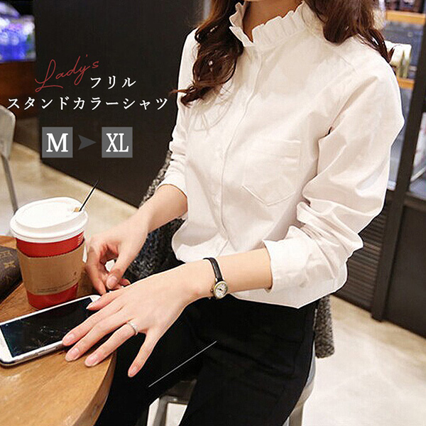 シャツ ブラウス レディース 長袖 レディースブラウス レディースシャツ フリルシャツ フリル 大人かわいい おしゃれ シンプル 着回し抜群 合わせやすい ホワイト 白 大人かわいい レイヤードコーデ デイリー きれいめ