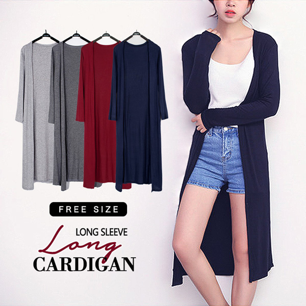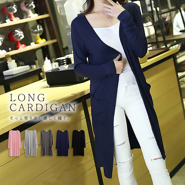 ロングカーディガン カーディガン カーデ ロング丈 シンプル 長袖 デイリー使い シンプル 合わせやすい 着回し力抜群 伸縮性抜群 着心地快適 全4色 淡グレー 濃グレー レッド ネイビー
