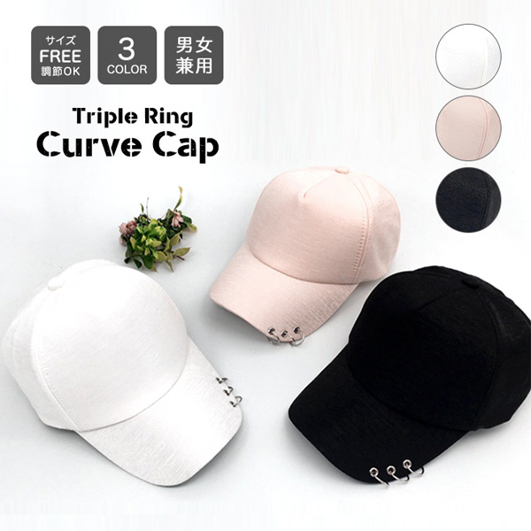帽子 キャップ メンズ レディース 3連リング リング付き 3連 男女兼用 ユニセックス 無地 シンプル フリーサイズ カーブキャップ カジュアル サイズ調節可能 ホワイト ピーチ ブラック カジュアル お揃い ストリート モード