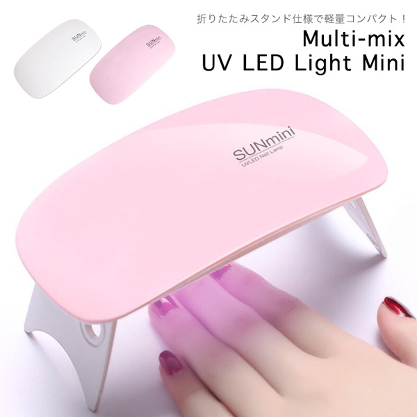 ライト UVライト LEDライト マルチミックスライト 超薄型 軽量 コンパクト設計 持ち運び便利 省スペース収納 USBコード接続 モバイルバッテリー対応 ジェルネイル レジンアクセサリー レジン タイマー機能付き ホワイト ピンク