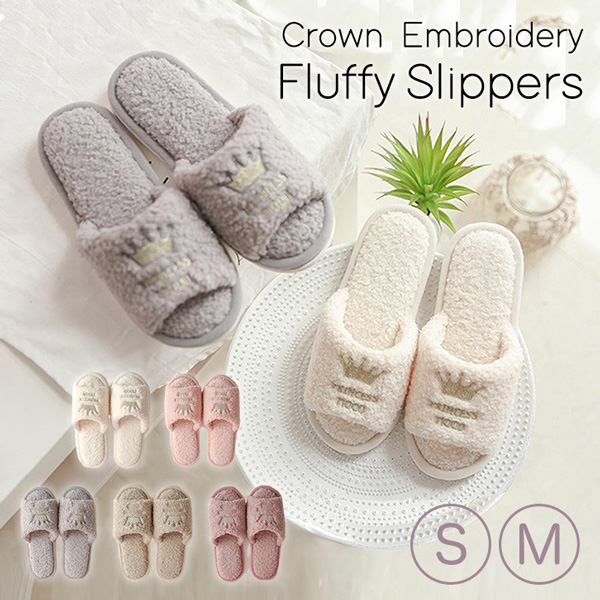 スリッパ ルームシューズ 室内用 かわいい あったか もこもこ 王冠 クラウン おしゃれ 可愛い Sサイズ Mサイズ 王冠刺繍 全5色 履き心地抜群 クッション性 ふわもこ ラメ刺繍 滑り止め付き 全5カラー 自宅用 来客用