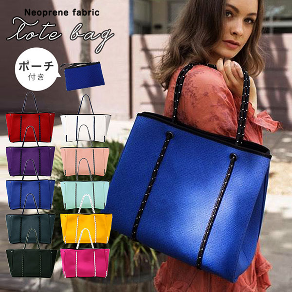 トートバッグ ネオプレンバッグ ポーチ付き 大きめ 大容量収納 収納力抜群 レディースバッグ ダイバー素材 ネオプレーントートバッグ シンプル 合わせやすい 無地 カラー豊富 カラーバリエーション豊富 全10色 ポーチ付き