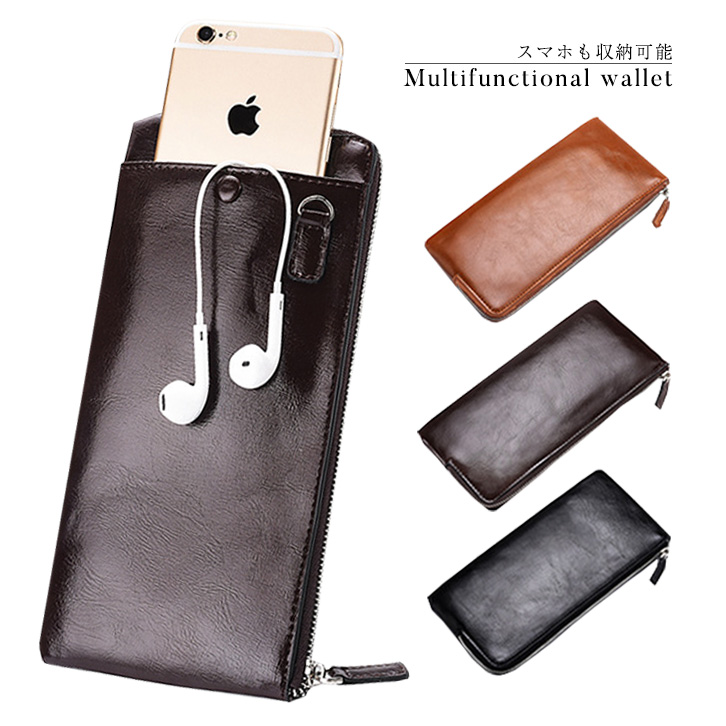 財布 長財布 バッグ スマホ ラウンドファスナー メンズ レディース ブラック 大容量 ポケット多数 多機能 軽装 海外旅行 スマホポケット付 たくさん入る