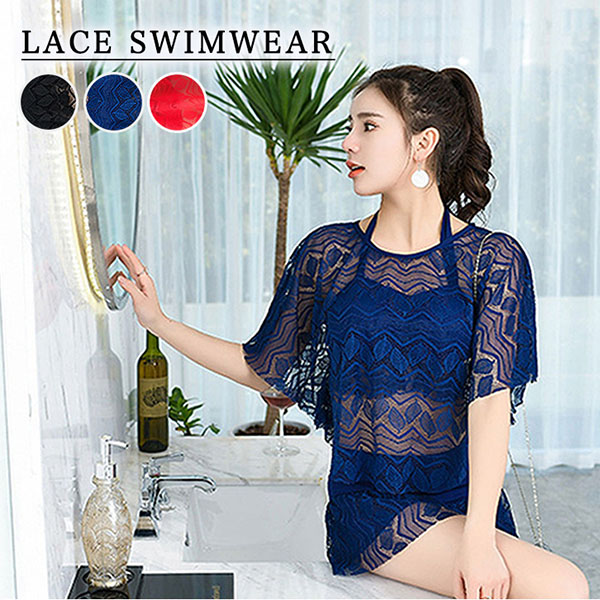 レディース 水着 3点セット フリル レース 水着 体型カバー チュニック付き 水着 体型カバー レース チュニック 3点セット 水着 体型カバー 水着 フリル レディース シンプル 20代 30代 体型カバー 水着 レース チュニック付き 小胸カバー