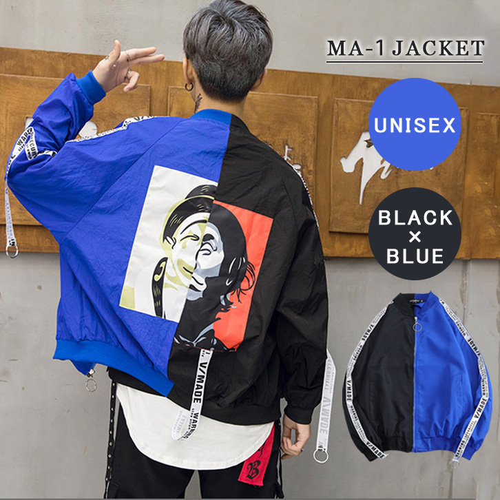 ジャケット ブルゾン メンズ ピエロジャケット ピエロ柄 ジャンパー ストリート 青 黒 レディース ユニセックス オーバーサイズ おしゃれ 個性的 ダンス ヒップホップ ペアルック ピエロ オシャレ 男女兼用 ストリート系
