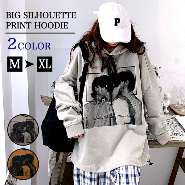 パーカー レディース プルオーバー プリントパーカー ビッグシルエット レディースパーカー おしゃれ トレンド ドローコード ゆったりシルエット 体型カバー ドロップショルダー 全2色 2カラー グレー ブラウン 着回し抜群