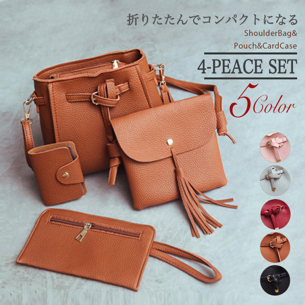 バッグ レディース ショルダーバッグ 肩掛けバッグ 斜め掛け バッグ4点セット ポーチ カードケース ミニショルダー PUレザー 折りたたみ可能 コンパクト 全5カラー 長さ調節可能 ショルダー紐取り外し可能 軽量
