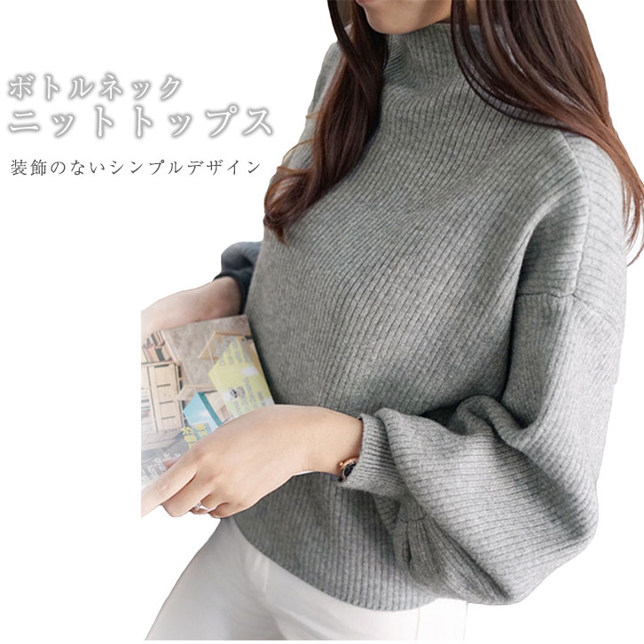 リブニット ニット ニットセーター ニット あったか 無地 ハイネック テレコ編み バルーン風袖 ボリューム ゆったり バルーンスリーブ シンプル 伸縮性 レディース 女性 ゆるふわ 可愛い お洒落 大人可愛い シンプル シンプルスタイル 定番 トレンド 人気 合わせやすい