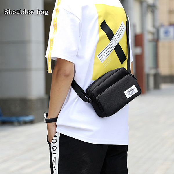 ショルダーバッグ 肩掛けバッグ ミニショルダー カジュアル シンプル 合わせやすい ブラック 男女兼用 ユニセックス デイリー使い 収納力抜群 内側ポケット フロントポケット ファスナー開閉 ナイロンキャンバス