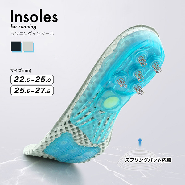 インソール 中敷き 中敷 スプリング スプリングパット内蔵 バネ 通気性抜群 メッシュ素材 EVA素材 スポーツ ランニング 衝撃吸収 疲れにくい メンズ レディース 男女兼用 グレー ブラック アーチサポート 立ち仕事 ユニセックス