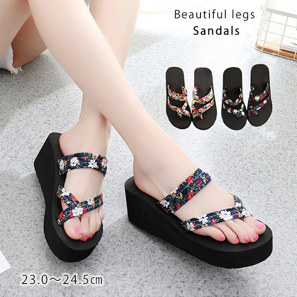 ビーチサンダル 厚底ビーチサンダル サンダル 厚底 花柄 軽い 歩きやすい ヒール 海 痛くない レジャー用 タウン用 女性用 履き心地 おしゃれ かわいい 軽量 滑り止め 可愛い 夏 ビーサン