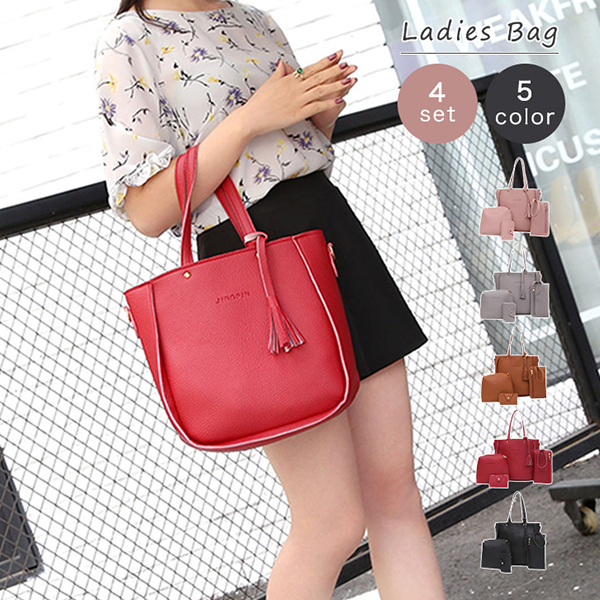 レディースバッグ ハンドバッグ バッグ 4点セット ミニショルダーバッグ ポーチ ミニポーチ カードケース 収納力抜群 カバン4点セット トートバッグ レザー調 シンプル 合わせやすい 大容量トートバッグ ファスナー開閉