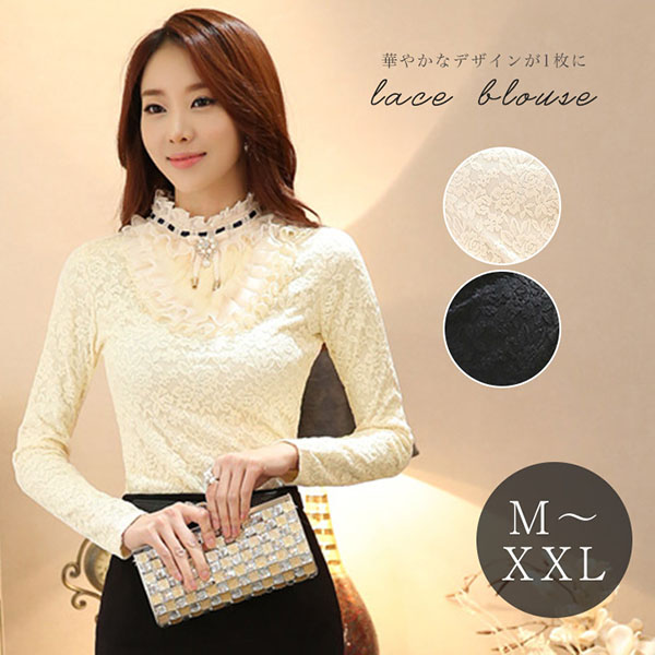 ブラウス 長袖 レディース 秋 春 冬 裏起毛 総レース レースブラウス ホワイト ブラック フリル ファー 大人かわいい キュート おしゃれ 綺麗め きれいめ ブローチ付き ブローチ取り外し可能 着心地抜群 肌触りあったか