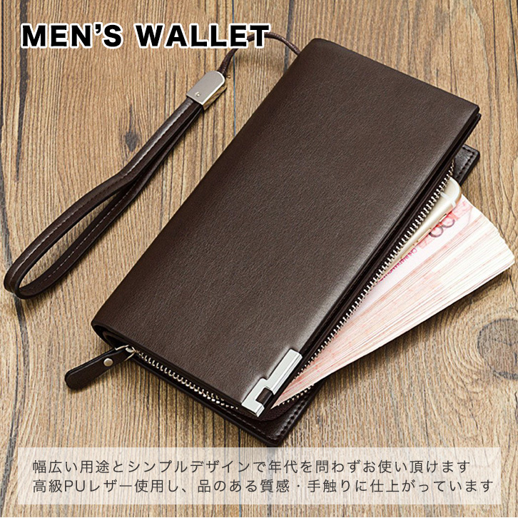 長財布 ロングウォレット ブラウン 小銭入れファスナー開閉 ホック式 大収納 折り財布 財布 大容量 カード収納