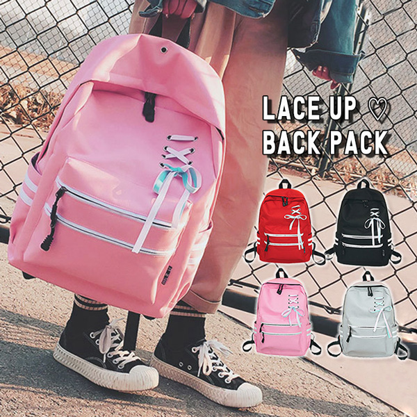 リュックサック バックパック リュック リボン レースアップ 大容量 万能リュック 通学 小学生 中学生 高校生 スクールリュック ティーン世代 大容量収納 収納力抜群 可愛い マチ広め ファスナー開閉