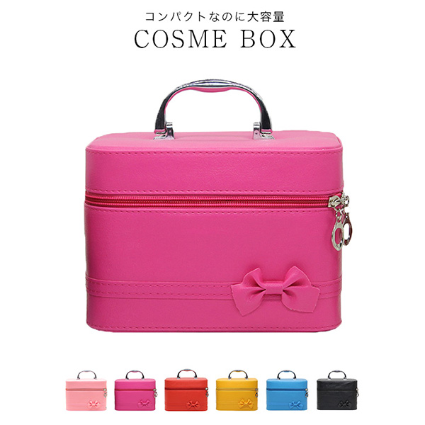 コスメボックス コンパクトコスメボックス 大容量 収納力抜群 大容量収納可能 ミラー付き ダブルジッパー開閉 ハンドストラップ取り外し可能 丈夫 耐久性抜群 カラー豊富 全6色 PUレザー