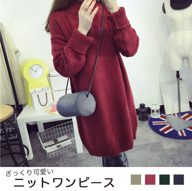 ニットワンピ ニット ワンピ ハイネックワンピ ハイネック あったか 暖か レディース ワンピース ひざ丈 ミディアムワンピ 長袖 秋冬 カラー豊富 カラバリ