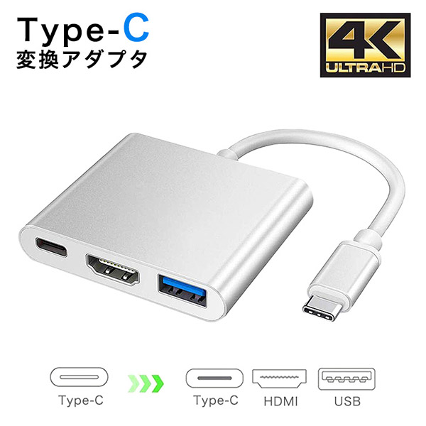 変換アダプタ Type-C変換アダプタ USBアダプタ 変換 多機能 3種類ポート Type-Cポート HDMIポート USBポート 充電 機能性抜群 4K映像対応 美麗映像 シルバー 変換ケーブル タイプC 変換ハブ ニンテンドースイッチ