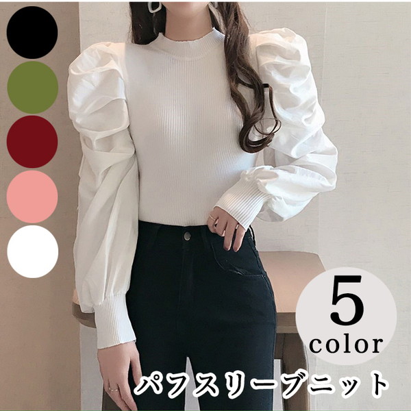 リブニット トップス パワーショルダートップス パワーショルダー パフスリーブ パワーショルダーニット カラー豊富 おしゃれ トレンド 可愛い 大人可愛い 二の腕カバー 華奢 袖リブ 大人カジュアル デイリー