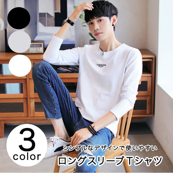 トップス ロンT ロングTシャツ 長袖 メンズ シンプル 着回し抜群 合わせやすい 使いやすい ロングスリーブTシャツ ワンポイントロゴ入り ストレッチ性 着心地抜群 カジュアル ブラック ベージュ ホワイト サイズ豊富