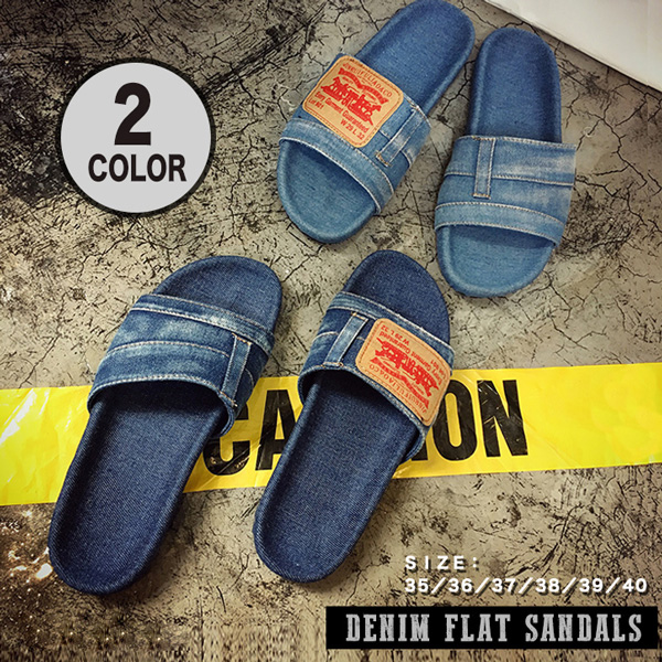 サンダル デニム生地 デニムサンダル フラットサンダル ぺたんこ 歩きやすい オシャレ リメイクデニム風 歩きやすい スリッパ 疲れにくい 履き心地抜群 シンプル 2タイプ ローヒール